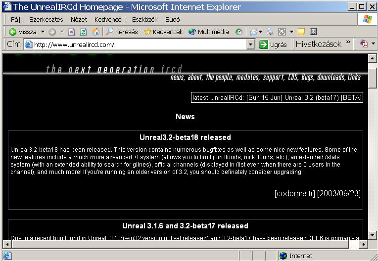 | Description | It's not an Unreal bug, but on www.unrealircd.com there is a news says Unreal-3.2-beta18 (2003.09.23)released, but above there is a box, where you can read that latest version is beta-17 (2003.06.15). | ||||